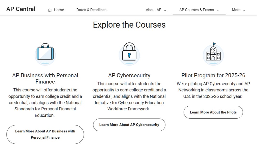 The last point certainly explains College Board’s participation in this study, considering the recent announcement of the new AP Career Kickstart program featuring offerings in AP Business with Personal Finance and AP Cybersecurity.