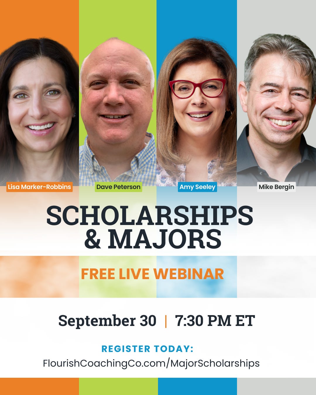 I’m moderating an exciting free webinar this month: Scholarships & Majors: How College Major Clarity Unlocks More College Aid. Join us on September 30 at 7:30pm EDT to learn practical tips from scholarship strategist Dave Peterson and master career coach Lisa Marker-Robbins PLUS one real scholarship example for each of the six most popular majors! Register here.